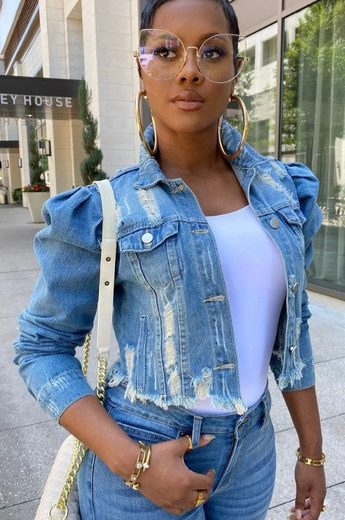 Experience the perfect combination of style and edge with our Ripped Denim Jacket. This trendy jacket features detailed rips and tears for a unique and modern look. Made with high-quality denim, it's durable and comfortable. Upgrade your wardrobe and elevate any outfit with this must-have jacket.