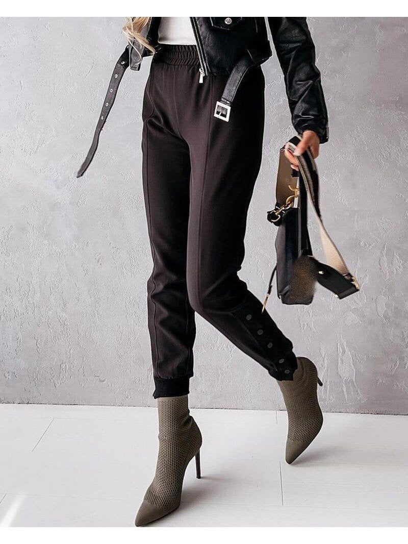 Introducing our Button Bottom Jogger Pants, designed for those who appreciate both style and comfort. Crafted with a blend of cotton and polyester, these pants offer a snug and flattering fit, perfect for the winter season.